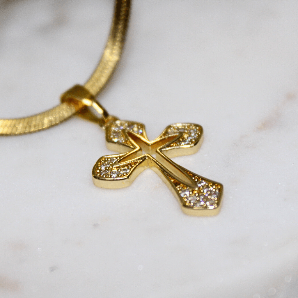 Elevate your everyday style with this elegant Anti-Tarnish Gold Cross Pendant Necklace, designed to combine timeless symbolism with modern durability. The beautifully crafted cross pendant features sparkling zircon stones that add a subtle touch of brilliance while maintaining a minimalist and sophisticated look.